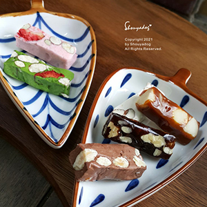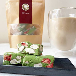 糖宣菓子工坊目前總共推出了草莓牛軋糖、抹茶草莓牛軋糖、原味牛軋糖、巧克力牛軋糖, 鹽之花太妃糖和南棗核桃糕這六款風味可以選購,繽紛質感的配色,讓人光看就食指大動 !