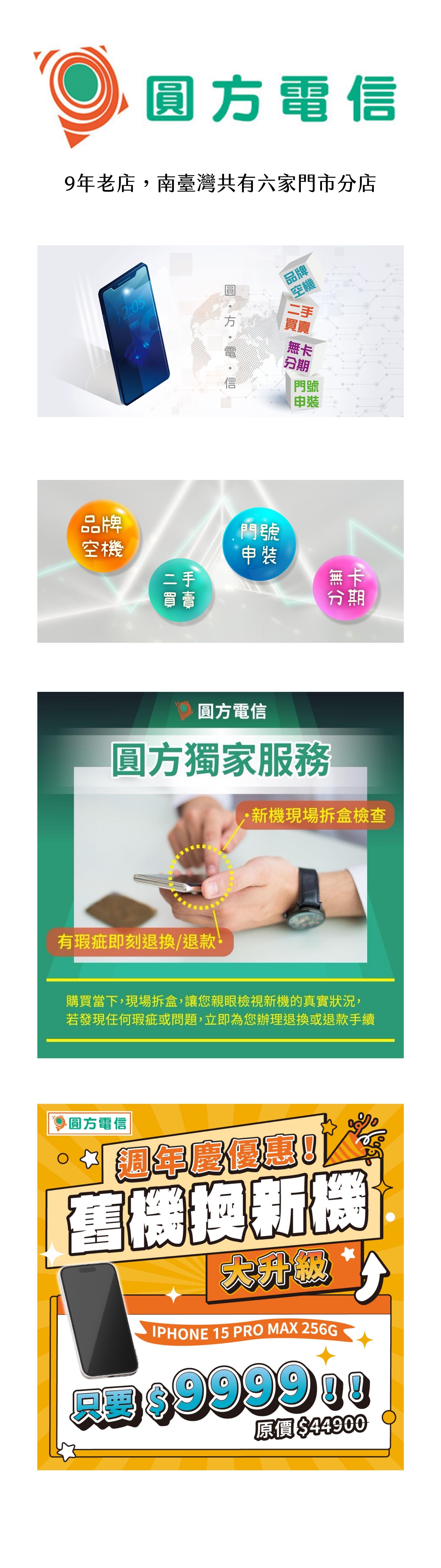 【圓方通信】南部的朋友有福啦!來買手機享「終身玻璃貼或手機殼保固」、iphone瑕疵立馬換新