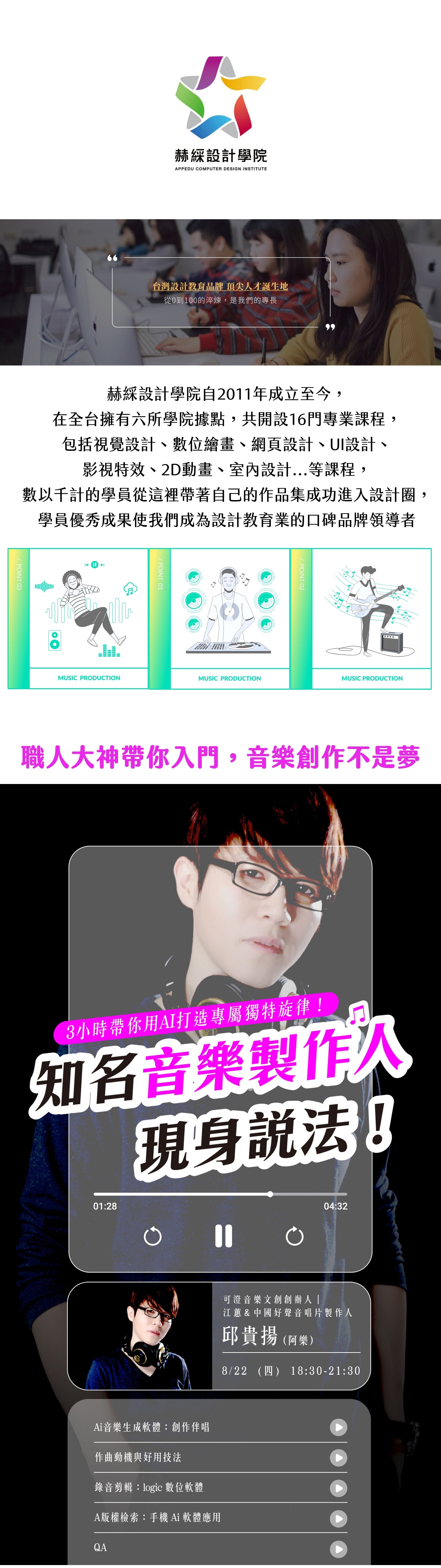 【赫綵設計學院】8/22,三小時跟上AI流行新趨勢!使用AI做音樂,事半功倍好品味!