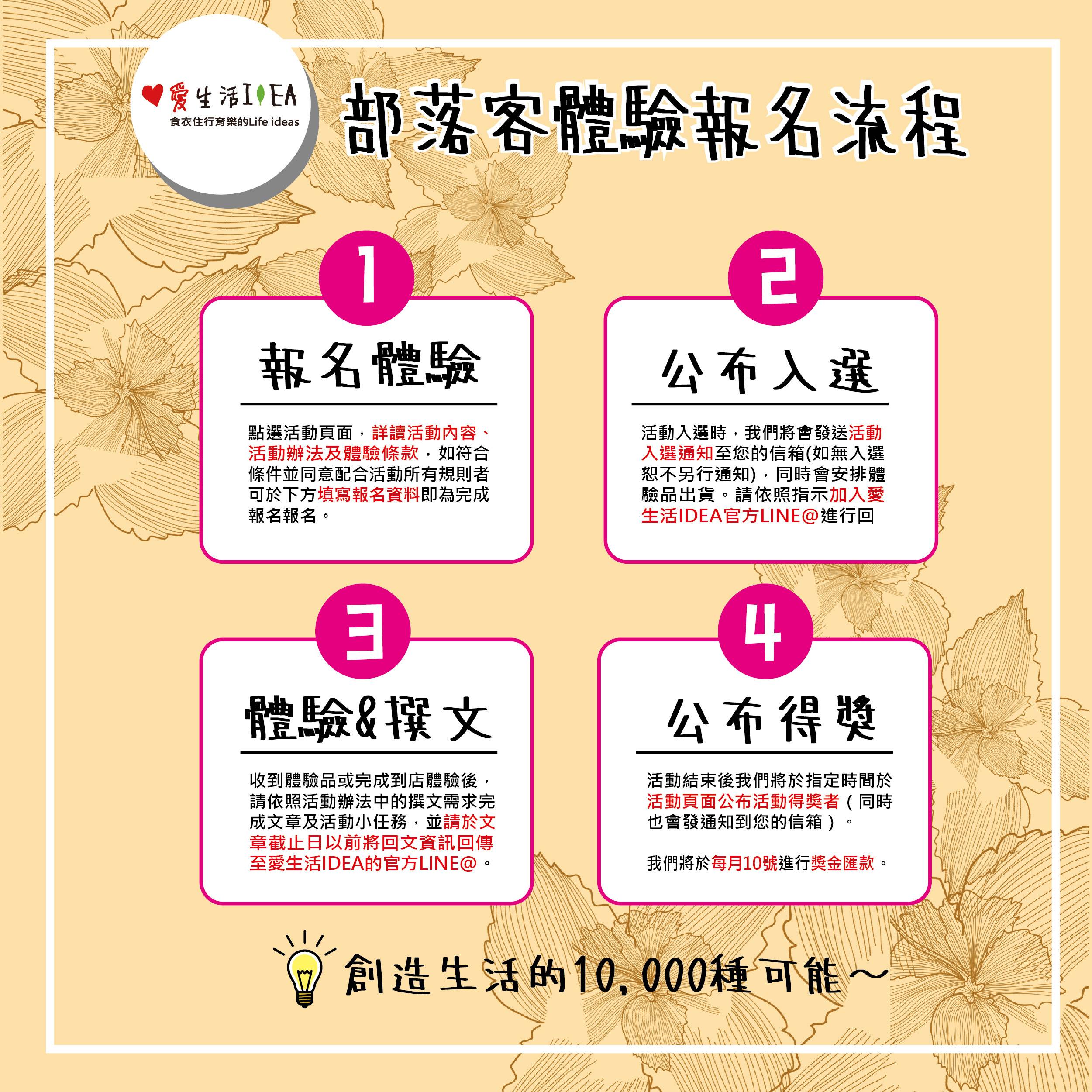 【報名條件】需擁有部落格平台,並同意配合活動排程及活動辦法規範進行發文者