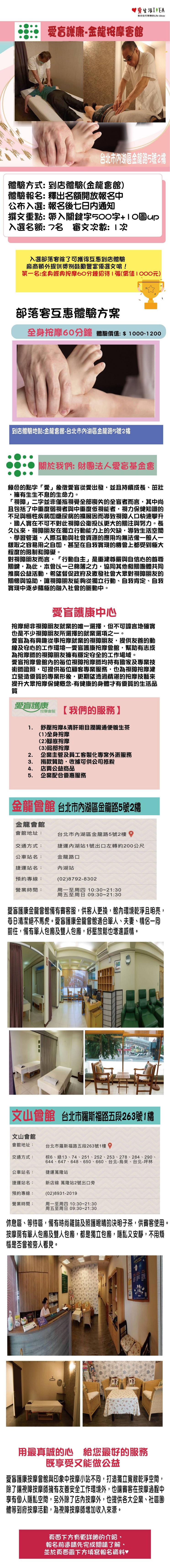 第一名蘇O儀全身經典按摩60分鐘招待劵1張(價值1000元)獎勵發放日:4/30以前 點我查看獎勵發放進度 點我查看精選好文